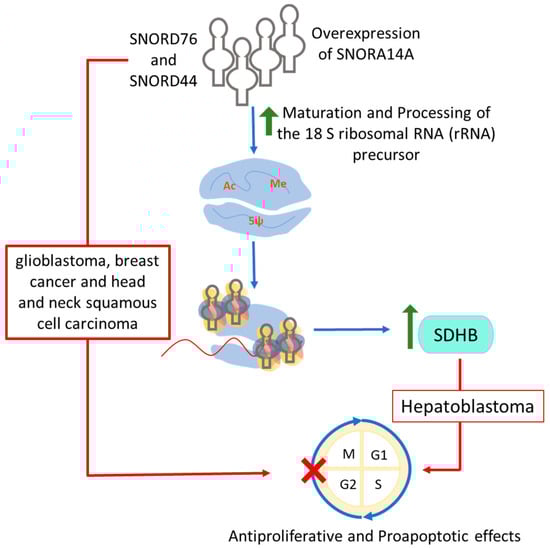 - Zhu, J.; Mao, S.; Zhen, N.; Zhu, G.; Bian, Z.; Xie, Y.; Tang, X.; Ding, M.; Wu, H.; Ma, J.; et al. SNORA14A inhibits hepatoblastoma cell proliferation by regulating SDHB-mediated succinate metabolism. Cell Death Discov. 2023, 9, 36. [Google Scholar] [CrossRef] [PubMed]