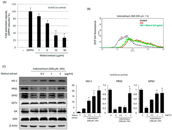 2.3. Walnut Extracts Afforded Antioxidative Action under Indomethacin Stimulation