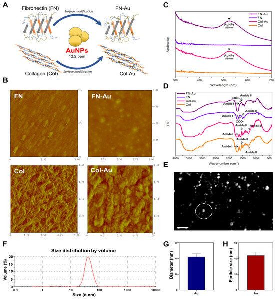 2.1. Characterization of the FN-Au and Col-Au Nanocomposites