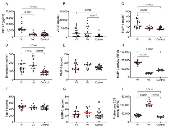 - Rahat, M.M.; Sabtan, H.; Simanovich, E.; Haddad, A.; Gazitt, T.; Feld, J.; Slobodin, G.; Kibari, A.; Elias, M.; Zisman, D.; et al. Soluble CD147 regulates endostatin via its effects on the activities of MMP-9 and secreted proteasome 20S. Front. Immunol. 2024, 15, 1319939. [Google Scholar] [CrossRef]