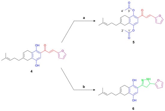 Synthesis of 2-[5-(Furan-2-yl)-4,5-dihydro-1H-pyrazol-3-yl]-6-(4-methylpent-3-en-1-yl)-5,8-dihydronaphthalene-1,4-diol (6)