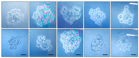 Shape of the colony before isolation from the 96-well plate. After 10 d of incubation, the colonies were visually examined under a microscope for monoclonal colony growth. Images of representative colonies were obtained from eel FSH-wt samples approximately 3 weeks post-plating with complete cloning medium in a non-shaking incubator. Colonies were selected and transferred into 24-well plates. Next, they were transferred into 6-well, T-25 flasks and 125 mL shaker flasks. The scale bars represent 50 μm.