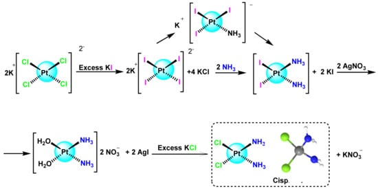 - Dhara, S. A rapid method for the synthesis of cis-[Pt (NH3) 2Cl2]. Indian J. Chem. 1970, 8, 193–194. [Google Scholar]