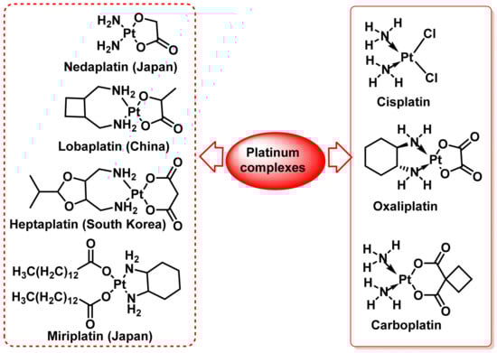 - Abu-Surrah, A.S.; Kettunen, M. Platinum group antitumor chemistry: Design and development of new anticancer drugs complementary to cisplatin. Curr. Med. Chem. 2006, 13, 1337–1357. [Google Scholar] [CrossRef] [PubMed]
