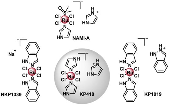 - Levina, A.; Mitra, A.; Lay, P.A. Recent developments in ruthenium anticancer drugs. Metallomics 2009, 1, 458–470. [Google Scholar] [CrossRef] [PubMed]