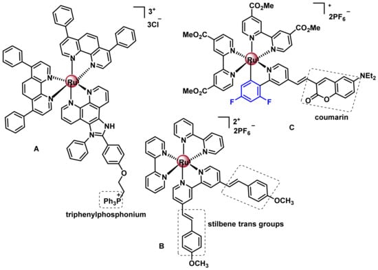 - Liu, J.; Chen, Y.; Li, G.; Zhang, P.; Jin, C.; Zeng, L.; Ji, L.; Chao, H. Ruthenium(II) polypyridyl complexes as mitochondria-targeted two-photon photodynamic anticancer agents. Biomaterials 2015, 56, 140–153. [Google Scholar] [CrossRef] [PubMed]