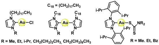 - Che, C.-M.; Sun, R.W.-Y. Therapeutic applications of gold complexes: Lipophilic gold(iii) cations and gold(i) complexes for anti-cancer treatment. Chem. Commun. 2011, 47, 9554–9560. [Google Scholar] [CrossRef] [PubMed]