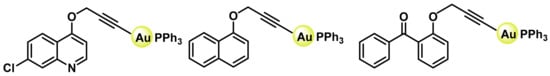 - Schuh, E.; Valiahdi, S.M.; Jakupec, M.A.; Keppler, B.K.; Chiba, P.; Mohr, F. Synthesis and biological studies of some gold(I) complexes containing functionalised alkynes. Dalton Trans. 2009, 10841–10845. [Google Scholar] [CrossRef]