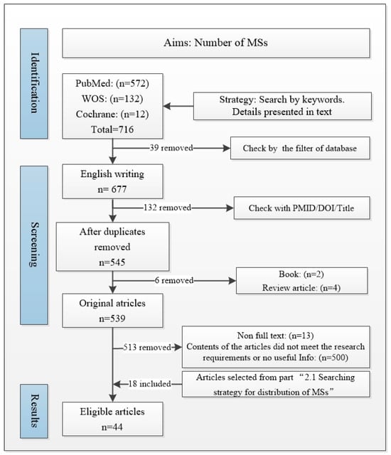 Flow diagram of search strategy for MSs distribution.