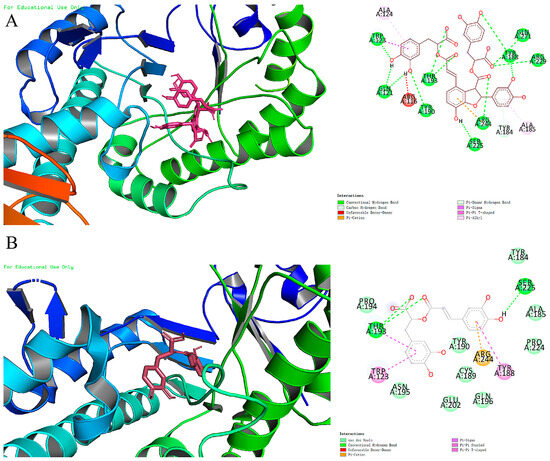 Molecular docking studies were performed using Autodock Vina 1.1.2, while the results were analyzed and the images processed using Pymol 2.1 and Discovery Studio 3.0 [41]. Firstly, the 2D structures of rosmarinic acid and salvianolic acid B were downloaded from the compound database (https://pubchem.ncbi.nlm.nih.gov/, accessed on 15 March 2024), and the structures were optimized using the Chembio 3D Ultra 14.0. Then, the 3D structures of HAase enzyme proteins were obtained by downloading them from the Protein Structure Data Bank (PDB Code: 2J88, http://www.rcsb.org/pdb/home/home.do, accessed on 16 January 2024). Next, the Autodock Tools 1.5.6 software was used to set the ligand and receptor parameters and convert their format to PDBQT for subsequent use. Finally, Autodock Vina 1.1.2 facilitated the generation and storage of molecular docking outcomes and enabled their visual analysis.