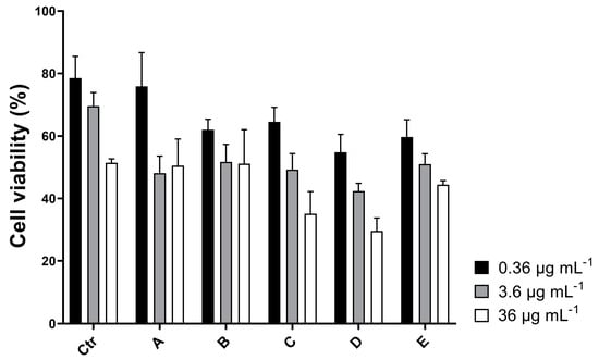 - Livak, K.J.; Schmittgen, T.D. Analysis of relative gene expression data using real-time quantitative PCR and the 2-ΔΔCT method. Methods 2001, 25, 402–408. [Google Scholar] [CrossRef]