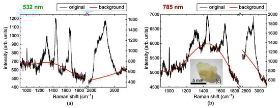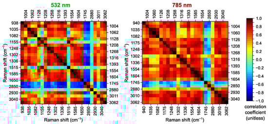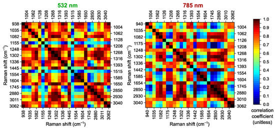 - Synytsya, A.; Judexova, M.; Hoskovec, D.; Miskovicova, M.; Petruzelka, L. Raman spectroscopy at different excitation wavelengths (1064, 785 and 532 nm) as a tool for diagnosis of colon cancer. J. Raman Spectrosc. 2014, 45, 903–911. [Google Scholar] [CrossRef]
