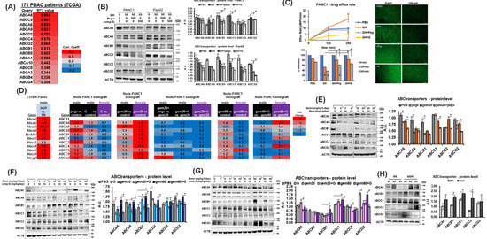 - Yang, C.; Yuan, H.; Gu, J.; Xu, D.; Wang, M.; Qiao, J.; Yang, X.; Zhang, J.; Yao, M.; Gu, J.; et al. ABCA8-mediated efflux of taurocholic acid contributes to gemcitabine insensitivity in human pancreatic cancer via the S1PR2-ERK pathway. Cell Death Discov. 2021, 7, 6. [Google Scholar] [CrossRef]