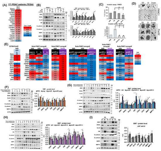 2.5. Combination of Chemotherapy and GHR Antagonism Suppresses EMT Induction in PDAC Cells and Xenografts