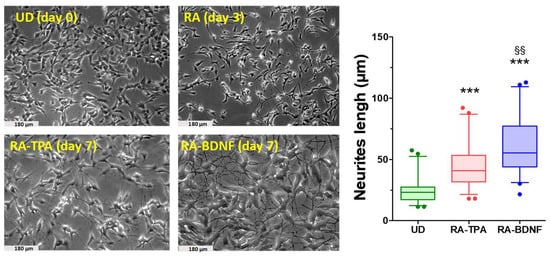 2.1. Effect of Differentiation with RA-TPA and RA-BDNF on SH-SY5Y: Morphological Analysis