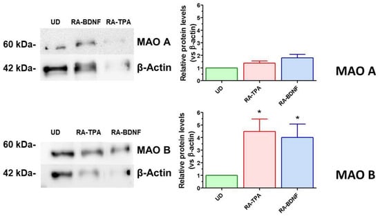 - Filograna, R.; Civiero, L.; Ferrari, V.; Codolo, G.; Greggio, E.; Bubacco, L.; Beltramini, M.; Bisaglia, M. Analysis of the Catecholaminergic Phenotype in Human SH-SY5Y and BE(2)-M17 Neuroblastoma Cell Lines upon Differentiation. PLoS ONE 2015, 10, e0136769. [Google Scholar] [CrossRef] [PubMed]