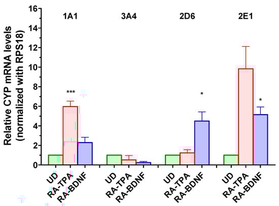 2.4. Induction of CYP Isoforms in UD and Differentiated SH-SY5Y Cells