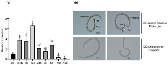 2.2. BxNMP1 Is Upregulated during Infection and Is Localized to Dorsal Gland Cells and the Intestine