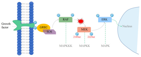 - Caunt, C.J.; Sale, M.J.; Smith, P.D.; Cook, S.J. MEK1 and MEK2 inhibitors and cancer therapy: The long and winding road. Nat. Rev. Cancer 2015, 15, 577–592. [Google Scholar] [CrossRef] [PubMed]