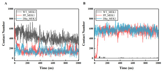 2.1.4. Metadynamic Simulations Indicate That Dha Modifications Cause MEK1 in a Continuous Activated State