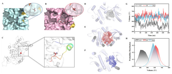 - Wagner, J.R.; Sorensen, J.; Hensley, N.; Wong, C.; Zhu, C.; Perison, T.; Amaro, R.E. POVME 3.0: Software for Mapping Binding Pocket Flexibility. J. Chem. Theory Comput. 2017, 13, 4584–4592. [Google Scholar] [CrossRef] [PubMed]