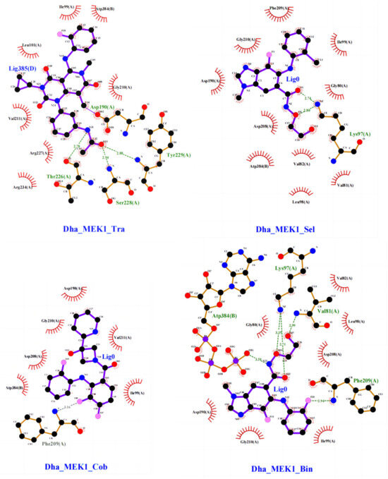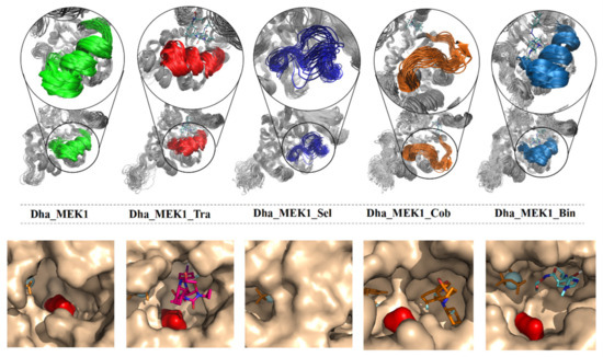 - Zhu, J.; Li, C.; Yang, H.; Guo, X.; Huang, T.; Han, W. Computational Study on the Effect of Inactivating/Activating Mutations on the Inhibition of MEK1 by Trametinib. Int. J. Mol. Sci. 2020, 21, 2167. [Google Scholar] [CrossRef] [PubMed]