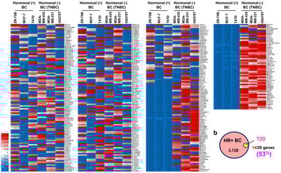 2.1. Fourteen Diabetes-Related Genes Are Significantly Expressed in Hormone-Receptor-Positive Breast Cancer (HR+ BC) Cell Lines from the NCBI GEO Dataset