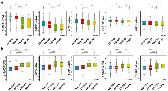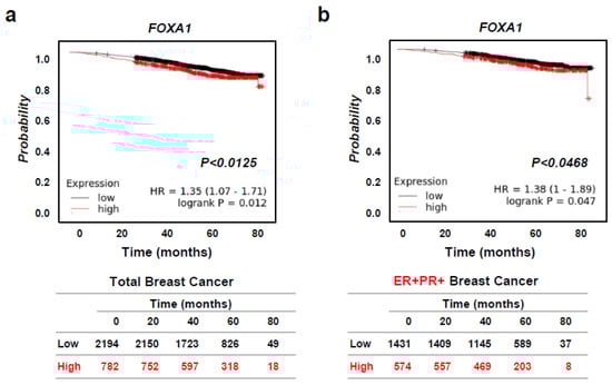 - Mehta, R.J.; Jain, R.K.; Leung, S.; Choo, J.; Nielsen, T.; Huntsman, D.; Nakshatri, H.; Badve, S. FOXA1 is an independent prognostic marker for ER-positive breast cancer. Breast Cancer Res. Treat. 2012, 131, 881–890. [Google Scholar] [CrossRef]