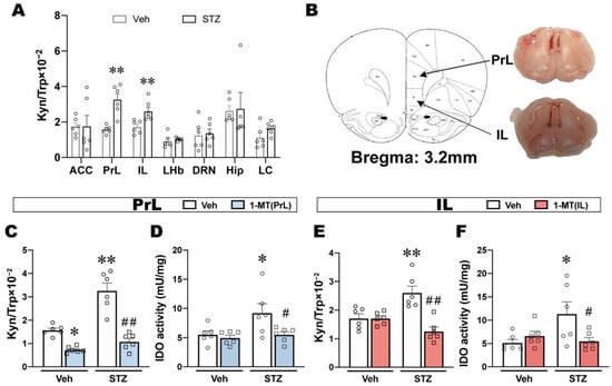 Qin Y, Hu X, Zhao H-L, Kurban N, Chen X, Yi J-K, Zhang Y, Cui S-Y, Zhang Y-H. Inhibition of Indoleamine 2,3-Dioxygenase Exerts Antidepressant-like Effects through Distinct Pathways in Prelimbic and Infralimbic Cortices in Rats under Intracerebroventricular Injection with Streptozotocin. International Journal of Molecular Sciences. 2024; 25(13):7496. https://doi.org/10.3390/ijms25137496