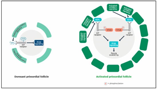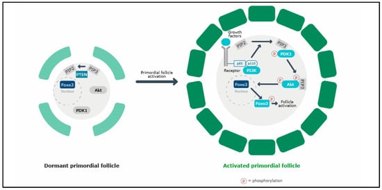 - Chen, Y.; Yang, W.; Shi, X.; Zhang, C.; Song, G.; Huang, D. The factors and pathways regulating the activation of mammalian primordial follicles in vivo. Front. Cell Dev. Biol. 2020, 8, 575706. [Google Scholar] [CrossRef]
