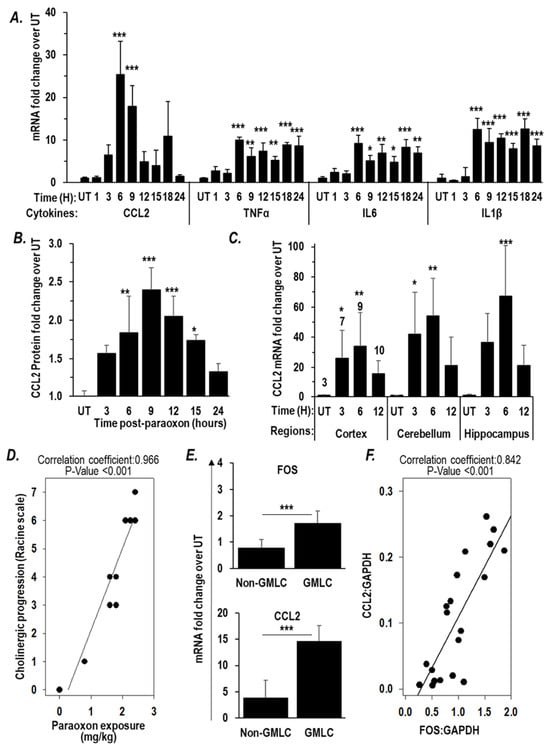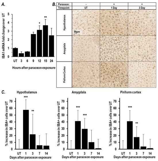 2.1. Paraoxon Exposure Induces Inflammation in the Brain