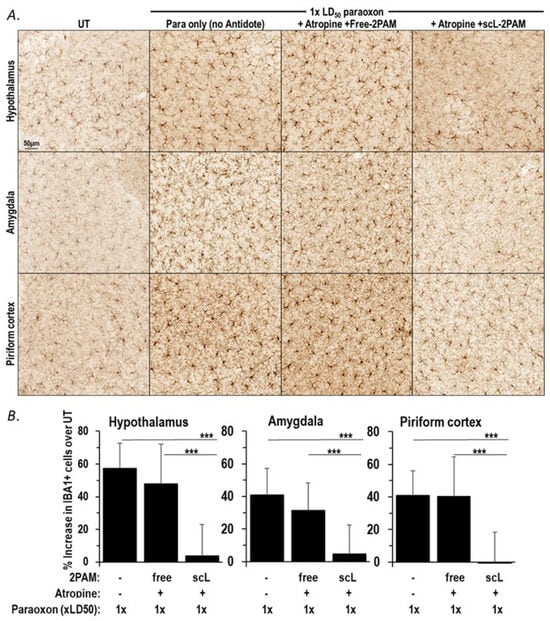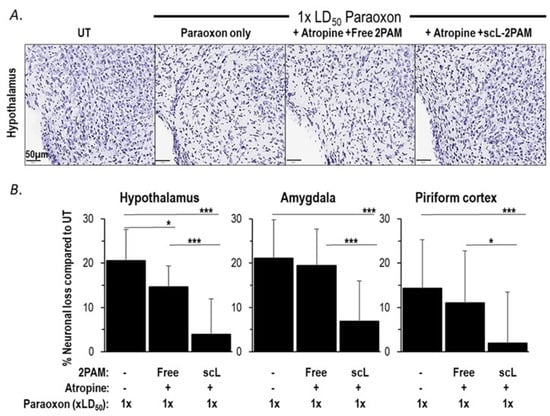 2.5. scL-2PAM Treatment Ameliorates Brain Damage after Paraoxon Exposure
