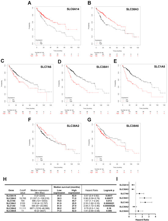24. Xie, J.; Li, P.; Gao, H.F.; Qian, J.X.; Yuan, L.Y.; Wang, J.J. Overexpression of SLC38A1 is associated with poorer prognosis in Chinese patients with gastric cancer. BMC Gastroenterol. 2014, 14, 70. [Google Scholar] [CrossRef]