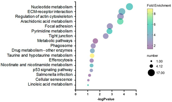 Bubble plot showing enriched KEGG pathways, resulting from the DEGs between control and cortisol groups.