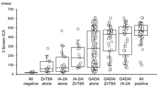 Kawasaki, E.; Jinnouchi, H.; Maeda, Y.; Okada, A.; Kawai, K. Estimation of Individual Positive Anti-Islet Autoantibodies from 3 Screen ICA Titer. Int. J. Mol. Sci. 2024, 25, 7618. https://doi.org/10.3390/ijms25147618
