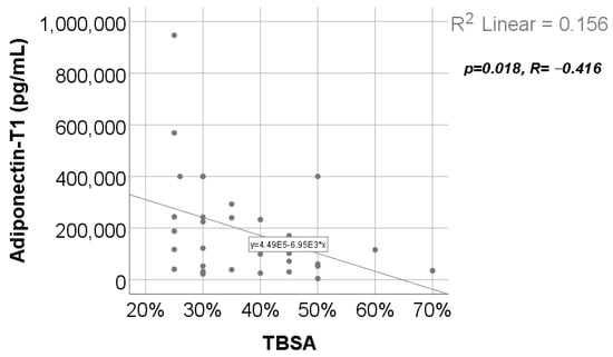 - Onishi, S.; Matsuura, H.; Osuka, A.; Matsumoto, H.; Ebihara, T.; Ogura, H. Resistin forms a network with inflammatory cytokines and is associated with prognosis in major burns. Burns 2022, 48, 1680–1689. [Google Scholar] [CrossRef] [PubMed]