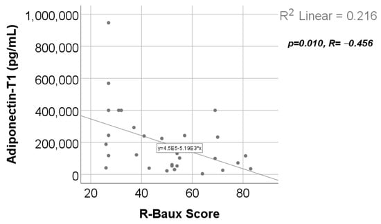 - Resistin and leptin (p = 0.024, R = −0.404), CRP (p = 0.005, R = 0.490), TNF-α (p = 0.001, R = −0.572) or PAI-1 (p < 0.001, R = 0.805);