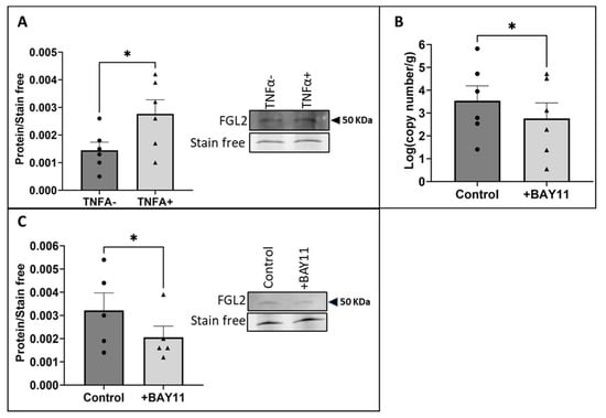 2.3. Shear Stress-Induced Production and Release of FGL2 Was Mediated by NFκB Activity