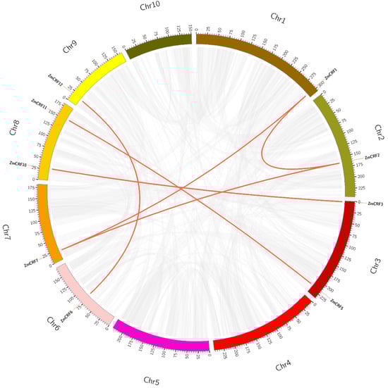 4.3. ZmCRF Gene Duplication and Synteny Analyses