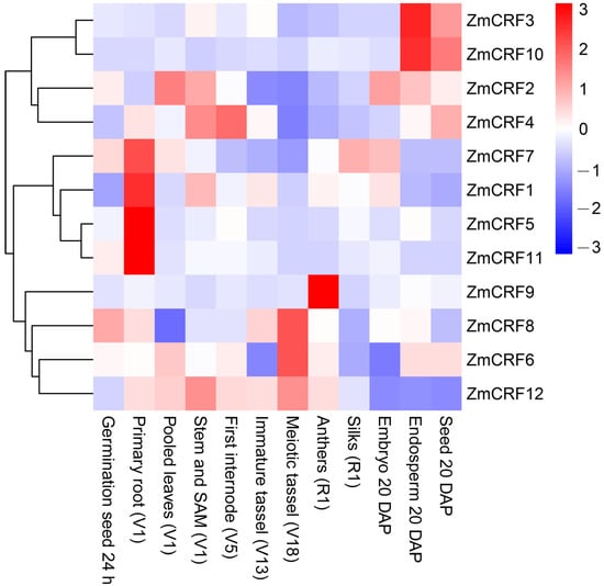2.6. Expression Profiles of Maize CRFs in Diverse Tissues and Developmental Stages