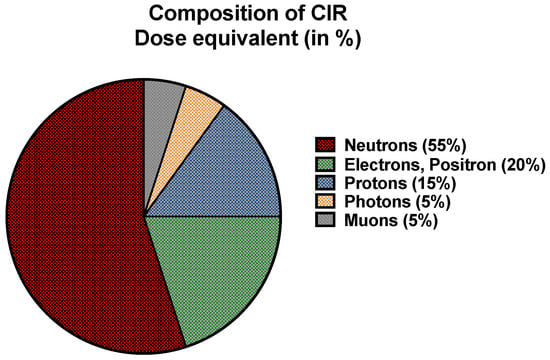 Components of CIR. Approximate proportions of the main components of CIR that occur in the atmosphere at aircraft altitudes and temperate latitudes. However, the composition of radiation inside the aircraft is expected to differ [].
