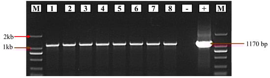 For the confirmation of successfully transplanted Arabidopsis thaliana plants, DNA was extracted from the leaf samples of transgenic plants resistant to hygromycin using the CTAB reagent. Promoter-based forward and GUS gene-based reverse primers were used for PCR confirmation. The plasmid of the expression vector (LR-construct) was used as the positive control, while the negative control consisted of the DNA from non-transformed Col-0 plants (Figure 5). Eight PCR-confirmed plants were selected and grown to T3 homozygous generation with hygromycin resistance and PCR amplification screening was performed in each generation. Great care was taken in each generation to avoid outcrossing.