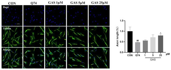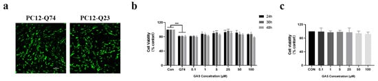 2.1. Gastrodin Prevents mHtt Toxicity and Morphological Damage in Q74 PC12 Cells