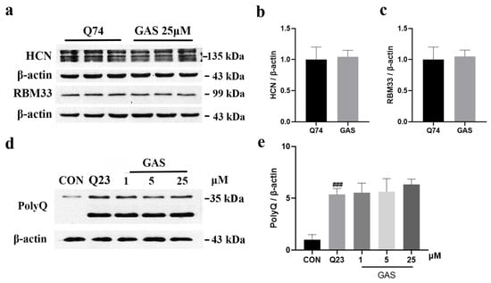 2.5. Gastrodin Does Not Alter the Levels of Normal Q23 HTT and Other CAG Repeat Proteins