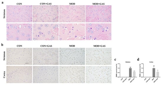 2.6. Gastrodin Increases Grip Strength and Decreases mHTT Aggregates in B6-hHTT130-N Mice