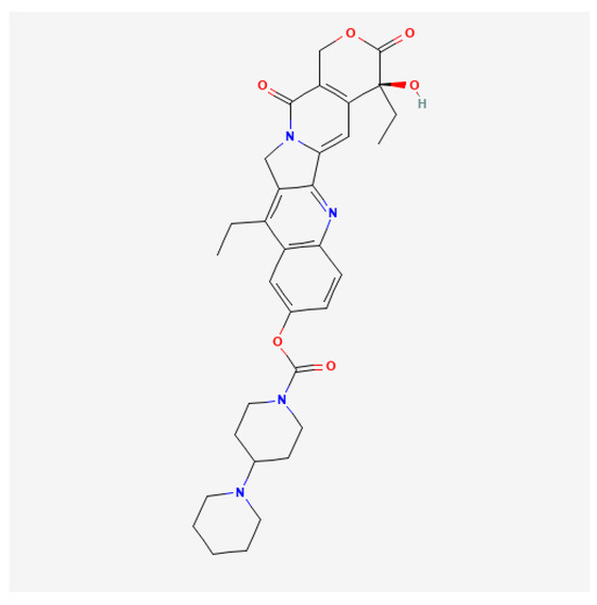 - National Center for Biotechnology Information. PubChem Compound Summary for CID 60838, Irinotecan. Available online: https://pubchem.ncbi.nlm.nih.gov/compound/Irinotecan (accessed on 25 June 2024).