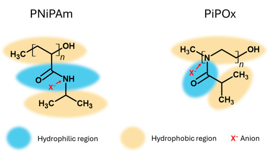 - Pérez-Fuentes, L.; Bastos-González, D.; Faraudo, J.; Drummond, C. Effect of Organic and Inorganic Ions on the Lower Critical Solution Transition and Aggregation of PNIPAM. Soft Matter 2018, 14, 7818–7828. [Google Scholar] [CrossRef] [PubMed]