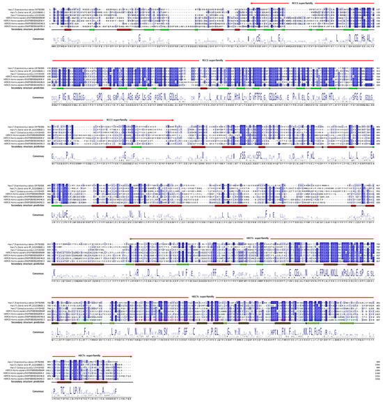 - Waterhouse, A.M.; Procter, J.B.; Martin, D.M.; Clamp, M.; Barton, G.J. Jalview Version 2-a multiple sequence alignment editor and analysis workbench. Bioinformatics 2009, 25, 1189–1191. [Google Scholar] [CrossRef]