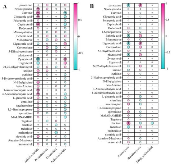 2.5. Correlation between Root Exudate Metabolites and Rhizosphere Microbiota