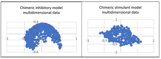 Chimeric and stimulant model multidimensional data represented as scatter plots.